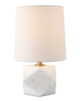 Featuring A Faceted Design, A Cut Above Table Lamp Is Crafted From White Marble With Subtle Veining And Accented With Plated Antique Brass Hardware. The Slightly Tapered Round Hardback Shade Is Covered In White Linen Fabric With Light Slubbing.
