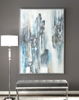 Abstract In Style, This Modern, Hand Painted Artwork On Canvas Features Muted, On Trend Shades. Mottled Hues Of Blue And Gray Are Paired With Charcoal And Cream Tones. Each Canvas Is Stretched And Attached To A Wooden Frame, Then Surrounded By A Petite, Silver Leaf Gallery Frame. Due To The Handcrafted Nature Of This Artwork, Each Piece May Have Subtle Differences. This Piece May Be Hung Horizontal Or Vertical.