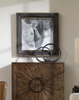 Rustic Charm Is Added To A Design With This Black And White Printed Photograph. The Transitional Animal Print Is Surrounded By A Distressed Wood And Metal Frame With Corrugated Style Ridges. A Distressed Black Finish And Gray Wash Adds Dimension To This Piece. This Print Is Placed Under Protective Glass. Artwork By Ph Burchett.