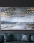 Moody Shades Of Gray And White Work Together To Create This Abstract Landscape Artwork. The Hand Painted Canvas Is Accented By Charcoal And Gold Leaf Tones With Subtle Green And Slate Blue Details And Is Paired With A Gold Gallery Frame. Due To The Handcrafted Nature Of This Artwork, Each Piece May Have Subtle Differences.