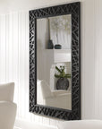 Sure To Make A Statement In Any Space, This Oversized Mirror Sports A Wood Frame With Raised Geometric Details, Finished In A Satin Black. Mirror Has A Generous 1 1/4" Bevel And May Be Hung Horizontal Or Vertical.