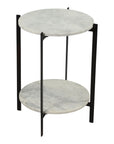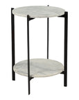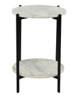 A modest piece of living room décor, the Melanie accent table keeps its class through tonal shades. Beautiful white marble slabs are held together by a two-tiered iron base with a matte-black finish. The end result of the Melanie accent table is a subtle contemporary piece that can be used for adding plant décor on one layer, and resting your coffee on the other.